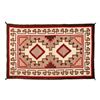 98" x 63". Finely woven Ganado Area rug with 38-40 wefts per inch. Features a wide, bold border with a spiraling wing tip motif. Central field has two large stepped diamond medallions on a light gray-brown ground. Woven from all Native, handspun and hand-carded smooth, long-staple Churro sheep wool on a wool warp. Circa 1920.