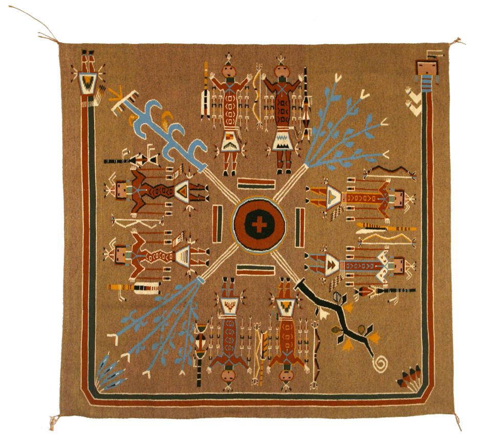 Navajo Sand Painting Weaving, 5' x 4'9", Estelle Yazzie