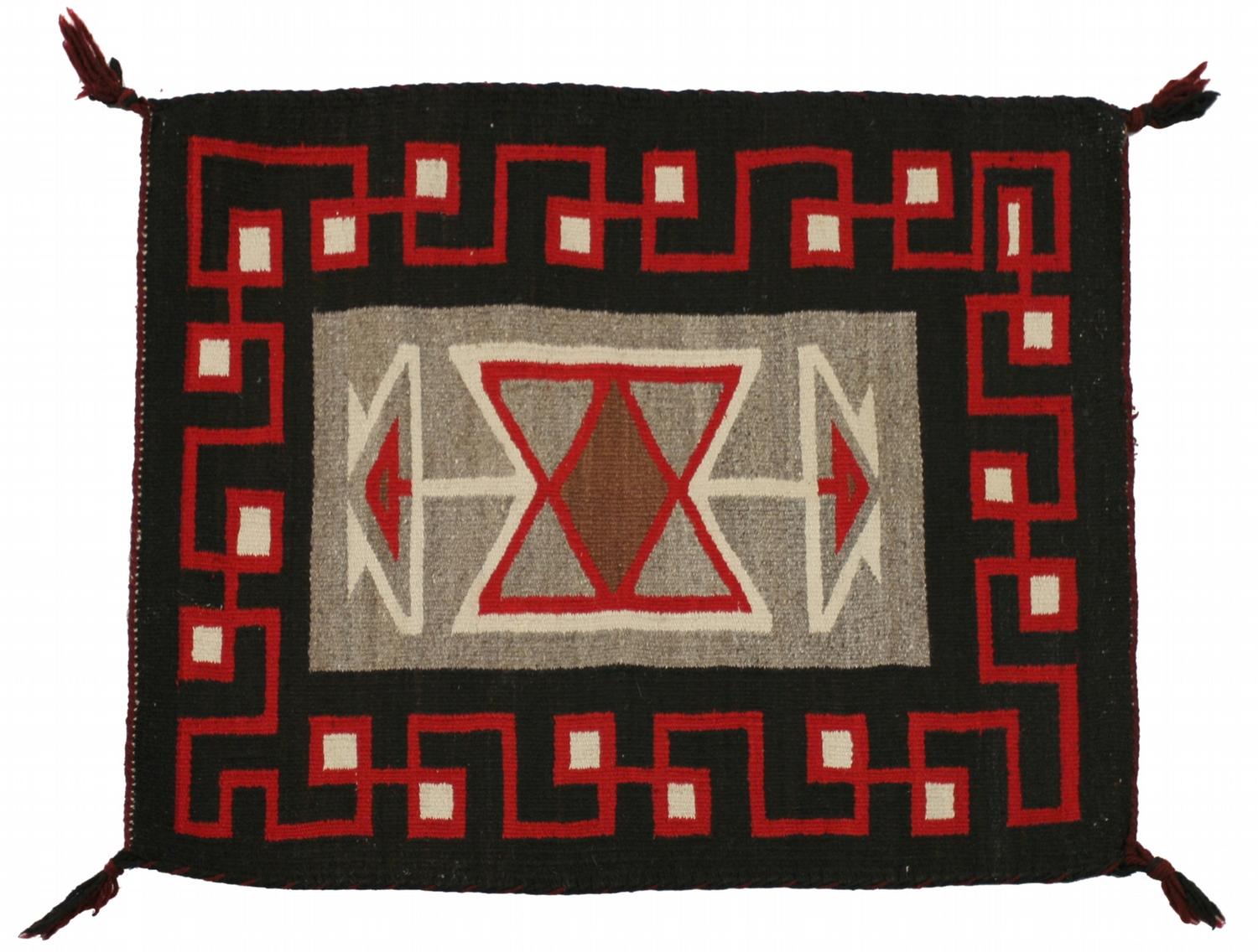 Navajo Weaving. 33" x 26". woven with Native handspun wool. Teec Nos Pos. circa 1940s. (est $300-500) Condition Report: Excellent condition
