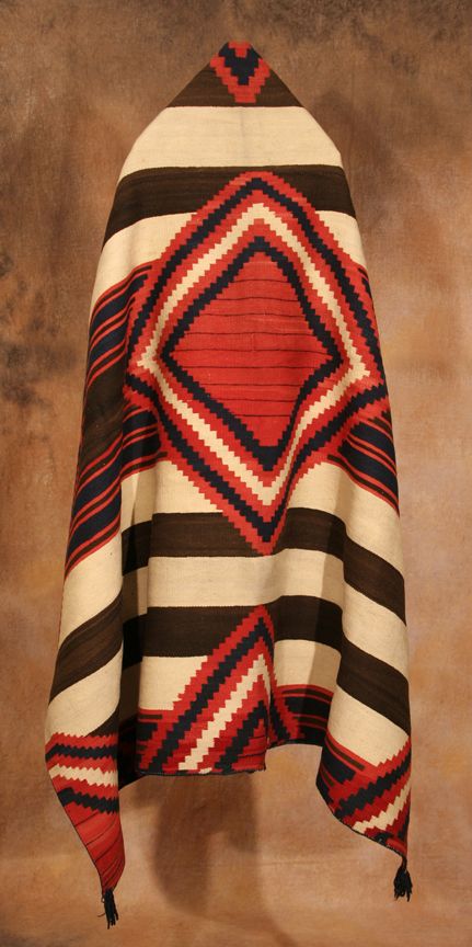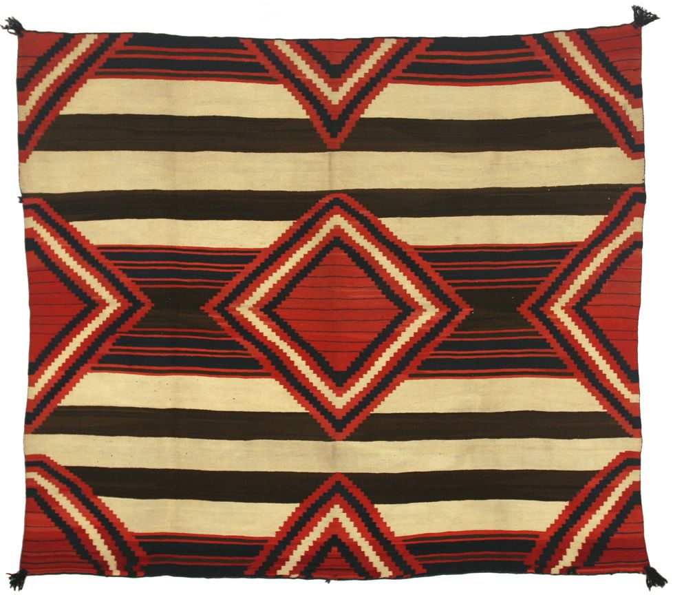 Navajo Third Phase Chief's Blanket. 5'9" x 5'. Classic style with a full stepped diamond center & eight partial diamonds along the edges, over a banded background. Circa 1860. Condition reports can be viewed at www.marchinmontana.com/docs/2013CR.pdf