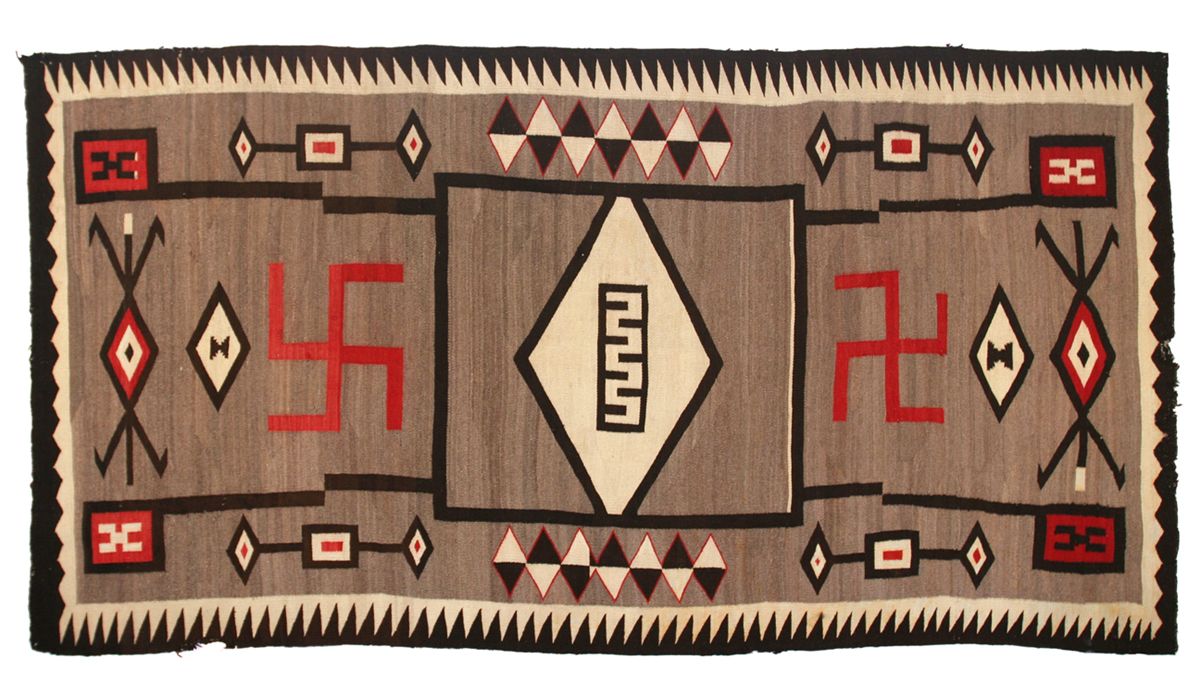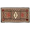 Navajo Weaving. 10'3" x 5'1". Nice big old weaving with floating elements, including whirling logs & water bugs. Serrated border. Circa 1900. Provenance: Jacob White Eyes to current owner by descent. Jacob White Eyes was chief interpreter for Buffalo Bill Cody. According to family history, Folco de Baroncelli-Javon gave this weaving to White Eyes while he was on tour in Europe with the Wild West Show in 1906. Condition reports can be viewed at www.marchinmontana.com/docs/2013CR.pdf