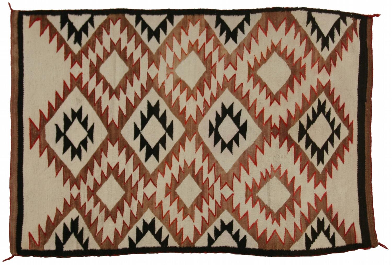 Navajo Weaving. 56" x 38". woven with Native handspun wool. circa 1930s. (est $300-500) Condition Report: Very good condition