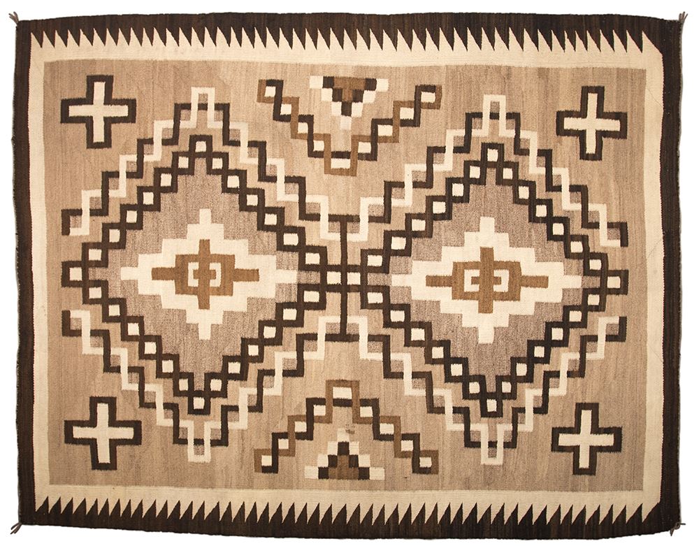 Navajo Weaving. 6'10" x 5'4" Crystal Area weaving with interlocking square pattern. Circa 1930.