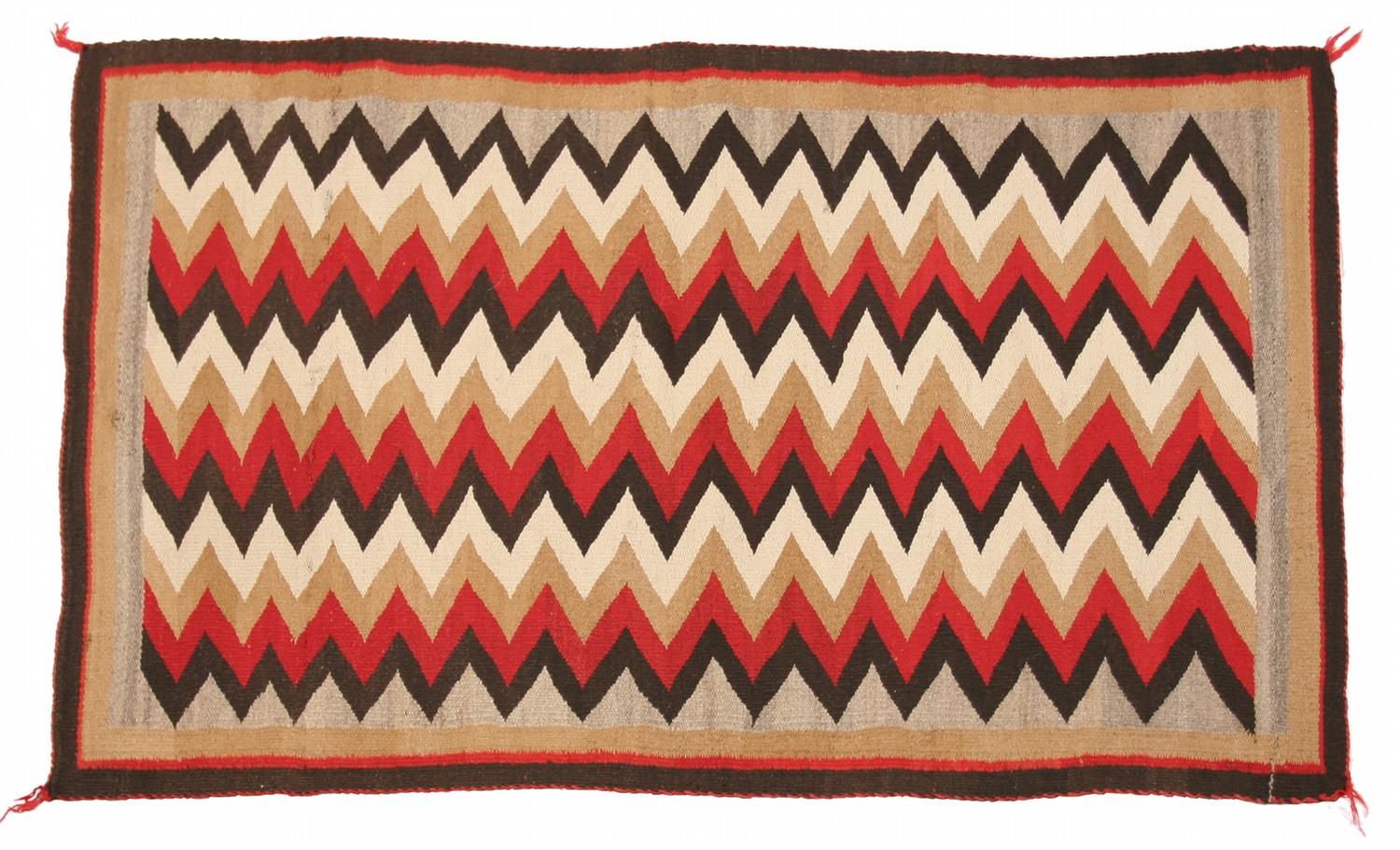 Navajo Weaving. 67" x 40". woven with Native handspun Churro & Merino wool. circa 1930. (est $600-900) Condition Report: Good condition with evidence of a few past repairs