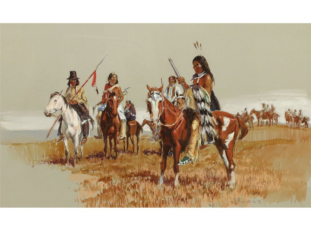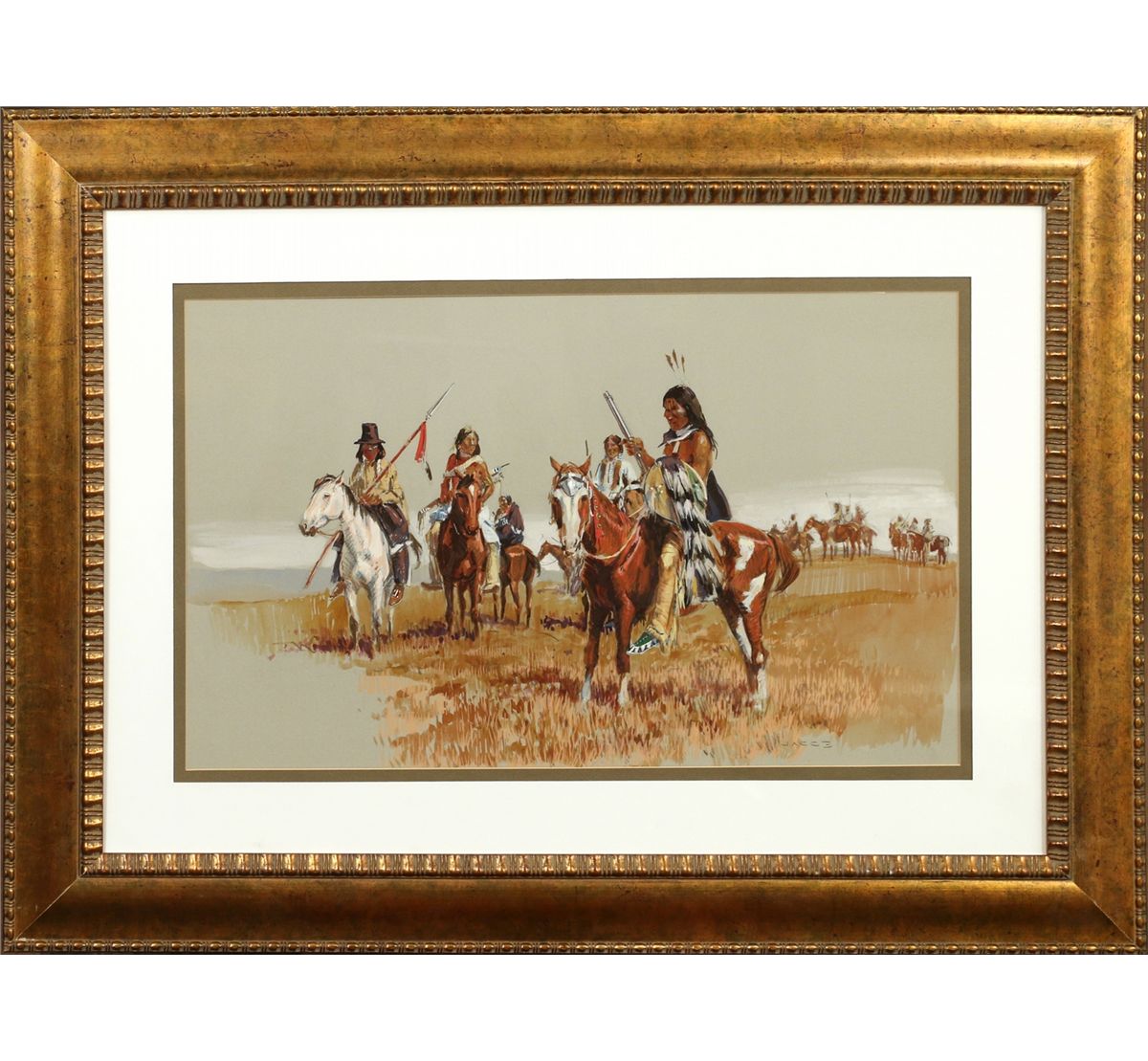 Ned Jacob (1938 - ). The Parley. 18" x 30" gouache. Signed lower right: JACOB.