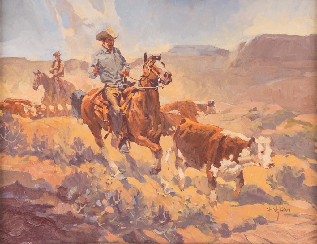 Newman Myrah (1921-2010) Cattle Roundup 18" x 24" oil on canvas Signed lower right $1,500-2,500