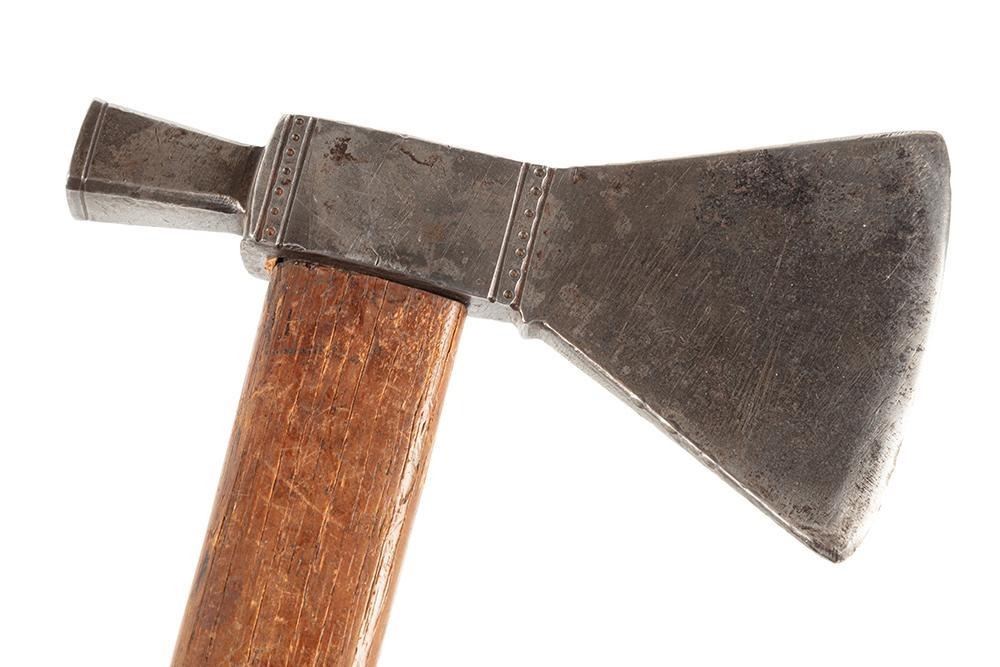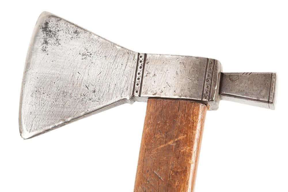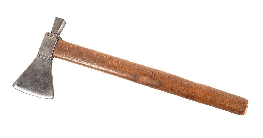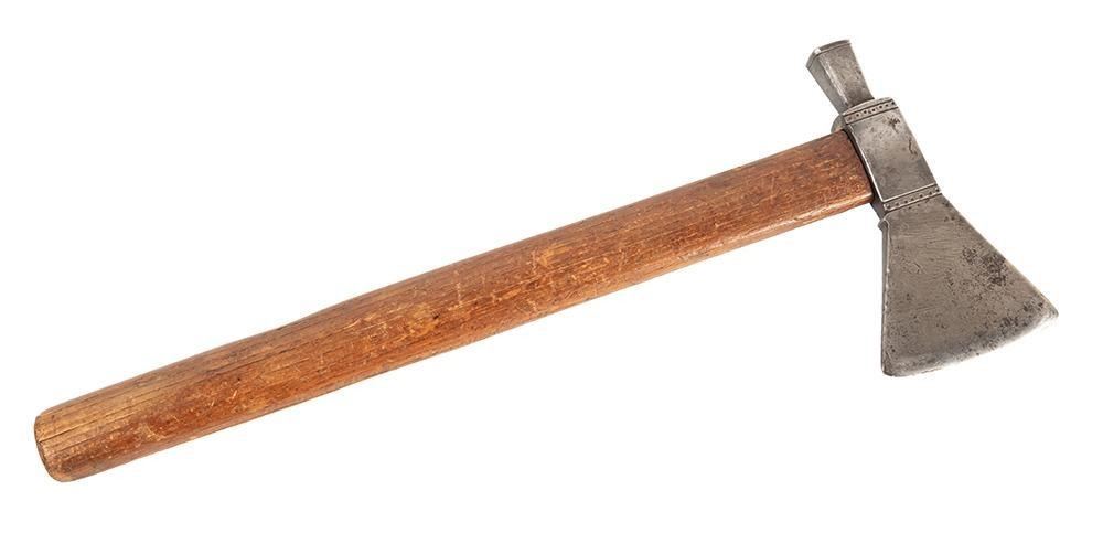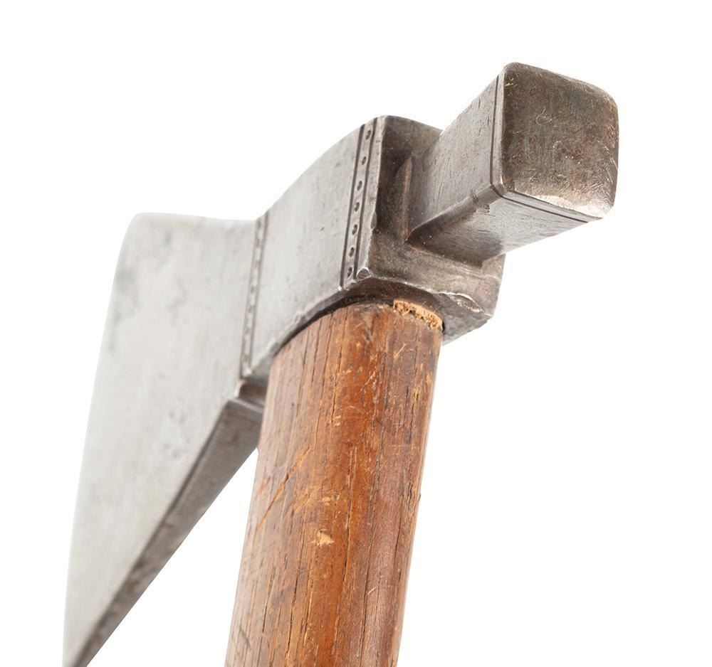 17.25" overall. A very well made hand-forged iron or steel head with a hickory haft. Circa 1850.