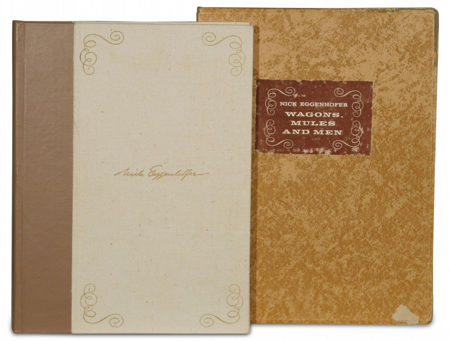 Nick Eggenhofer (1897-1985), CAA. Gouache inside the book Wagons, Mules and Men by Nick Eggenhofer. Dated 1961. With slip cover. #152 of a special edition. (est $1,000-2,000) Condition Report: Book excellent and drawing both excellent. Slip cover slightly chipped