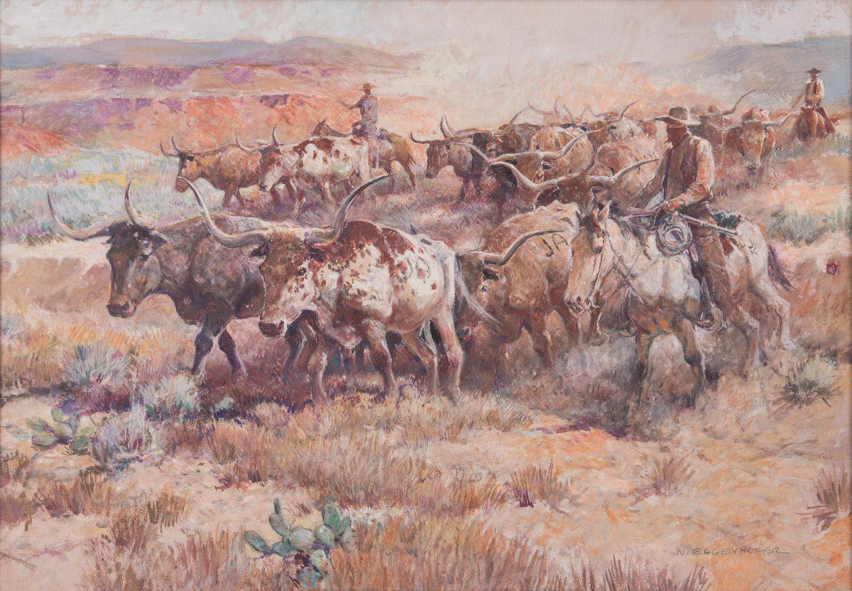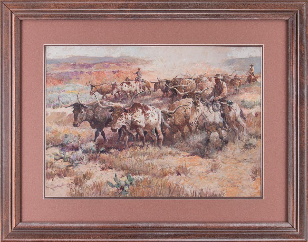 Nick Eggenhofer (1897-1985)(CA). Cattle Drive. 18" x 26" gouache. Signed lower right.