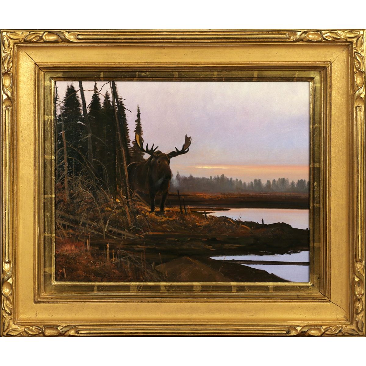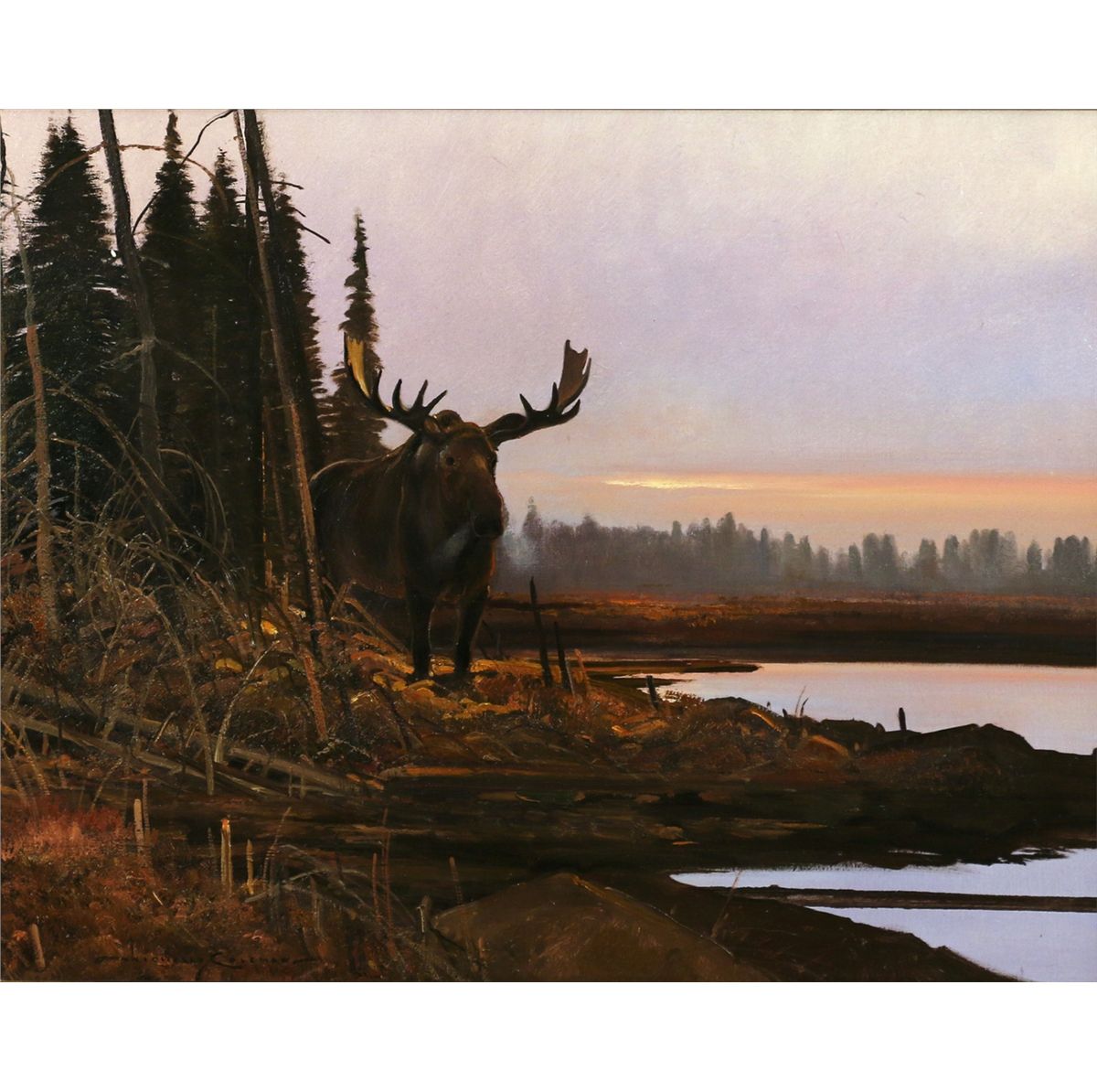 Nicholas Coleman (1978 - ). At Dusk - Alaskan Bull. 16" x 20" oil on board. Signed lower left: NICOLAS COLEMAN ©. Verso: signed and titled.