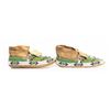 9" long with symmetrically beaded buffalo track design in blue, green, white and white-heart red beads. 19th century.
