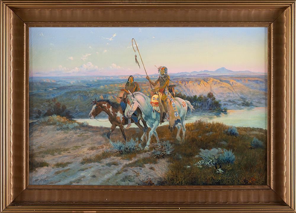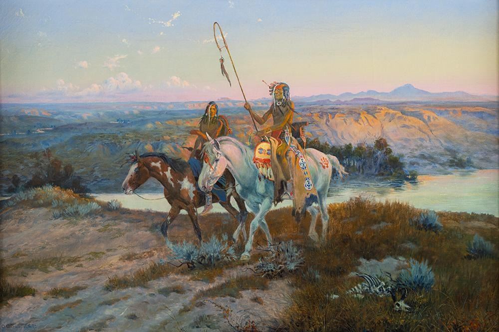 Olaf Carl Seltzer was a prominent Western artist known for his detailed and dynamic depictions of frontier life, landscapes, and Native American culture. Born in Copenhagen, Denmark, Seltzer immigrated to the United States at the age of 12 and settled in Great Falls, Montana. Influenced by his mentor and friend Charles M. Russell, Seltzer developed a passion for portraying the American West. His works, celebrated for their historical accuracy and vivid storytelling, often featured scenes of Native American life, particularly of the Blackfeet people, whose culture and traditions he deeply admired. Through his art, Seltzer sought to document the lives of the Blackfeet and their connection to the vast Montana landscapes.