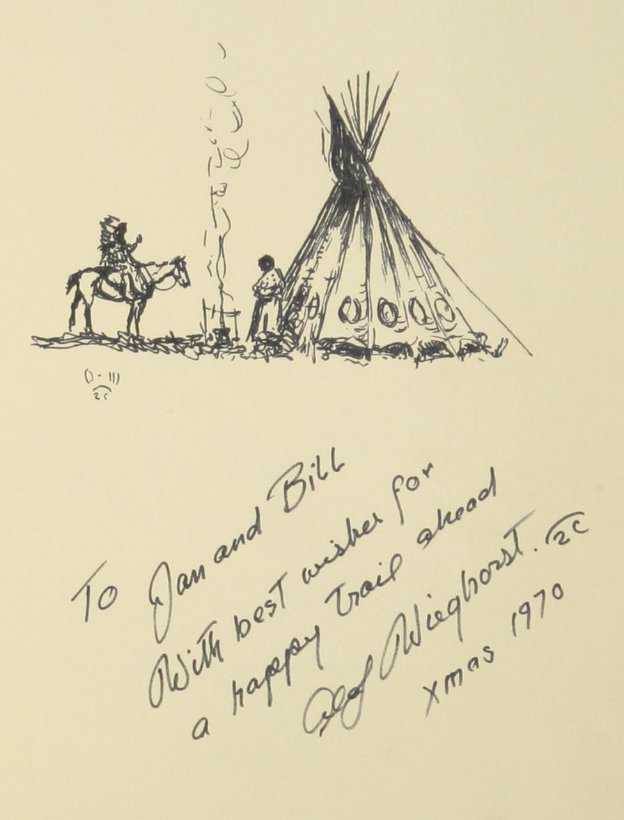 Olaf Wieghorst (1899-1988). Ink sketch inside the book Olaf Wieghorst by William Reed. Dated 1970 with inscription to the author. With slip cover. Especially done for the author, William Reed. (est $800-$1,200) Condition Report: Excellent condition
