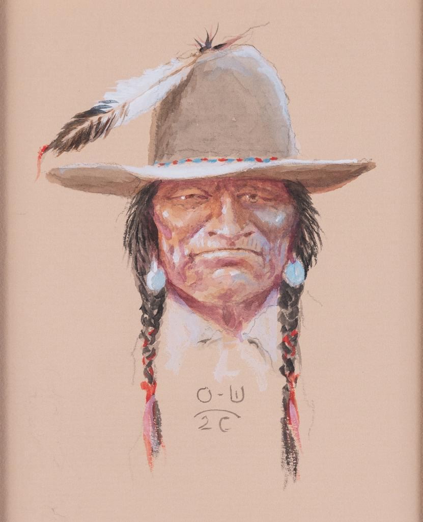 Olaf Wieghorst (1899-1988) Navajo Man 6.25" x 5.25" gouache Signed lower center $700-1,000