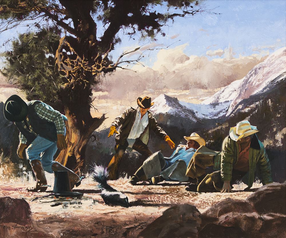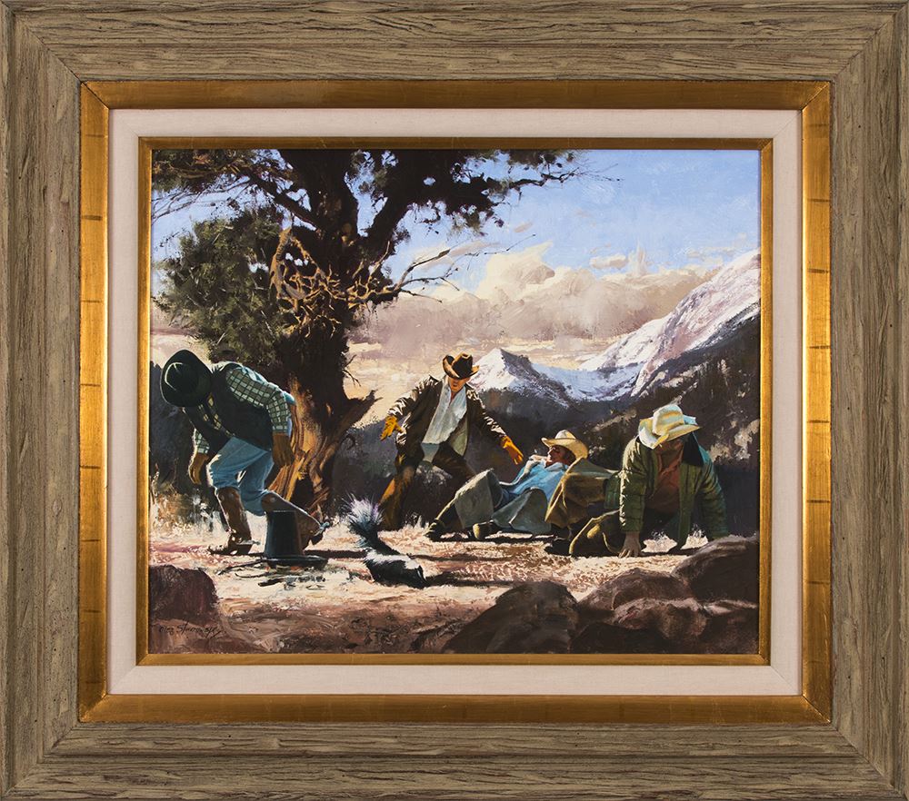 Oleg Stavrowsky (1927 - ). Uninvited. 20" x 24" oil on canvas. Signed lower left.