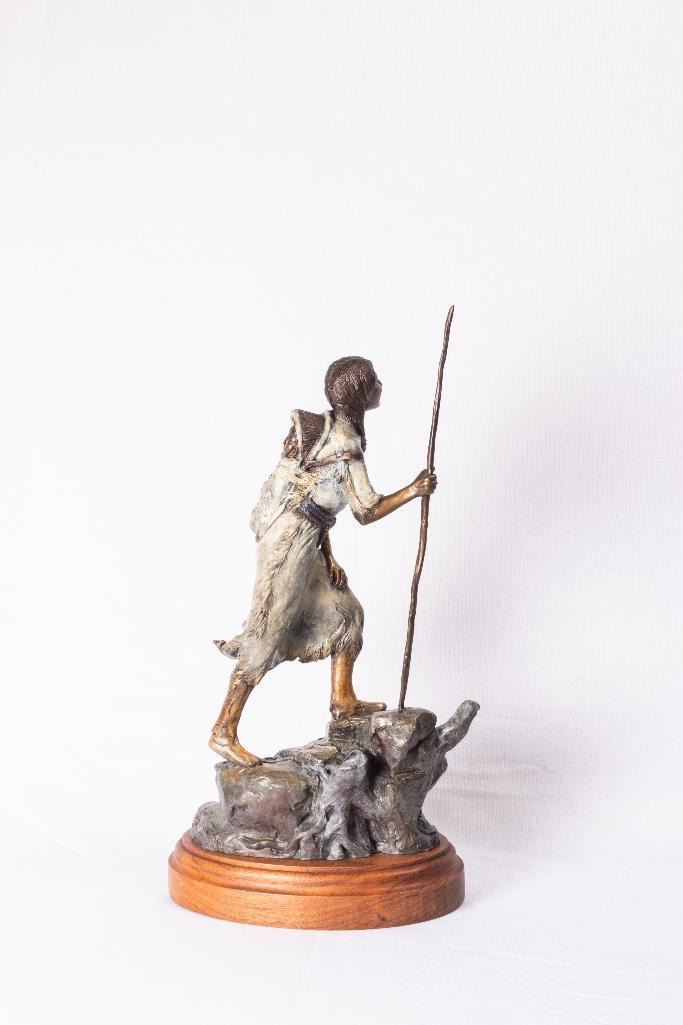 1) Ott Jones (20th C.) Jim Bridger, King of the Mountain Men 13.5" x 4.5" x 4.5" bronze Inscribed: Ott Jones, 2000, 29/58 Provenance: Certificate of Authenticity, signed by Ott Jones. Together with: 2) Carol A. Grende (1955-2009) Sacajawea Arduous Journey 17" x 9.5" x 6.25" bronze Inscribed: C.A. Grende 2003 (c) 2/20 Provenance: Collector's notes. $1,000-1,500