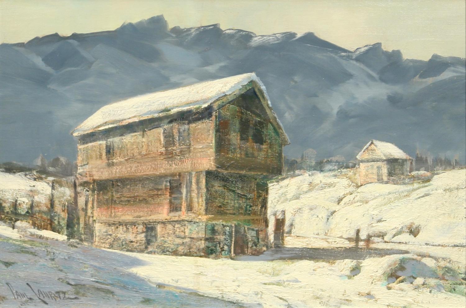 Paul Lauritz (1889-1975). Stabur. 17 ½" x 28" oil on board. signed lower left. (est $1,000-1,500) Condition Report: Black lights clean. In fine silver frame