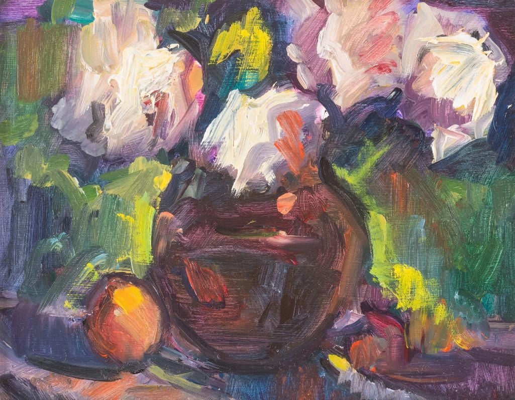 Paula Pearl (20th/21st C.) Three oils: 1) Good Bear 12" x 12" oil on canvas Signed lower right 2) Kid Proof 10" x 8.25" oil on board Signed lower left Verso: Titled and signed. 3) Floral Still-Life 8" x 10.25" oil on board Unsigned $800-1,200