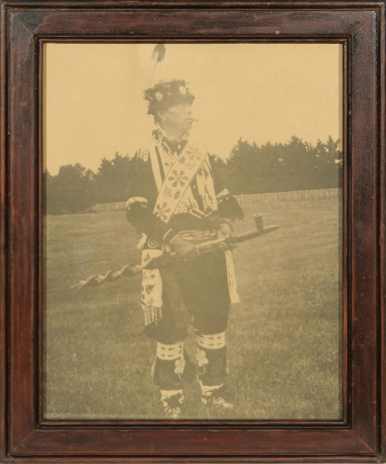 Photograph of Chippewa Chief. Fully decked out in ceremonial garb. circa 1880. 15" x 12". (est $600-900) Condition Report: Slightly faded, but no damage