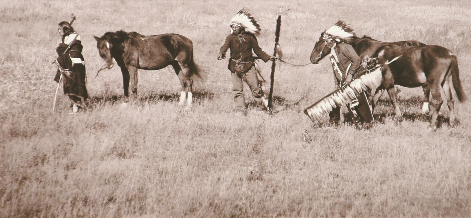 Photograph. Indians In A Field. 19" x 39". unknown photographer. (est $800-1,200). Provenance: National Museum of Wildlife Art, Jackson, WY. Condition Report: Crisp and clear-no damage. Nicely framed