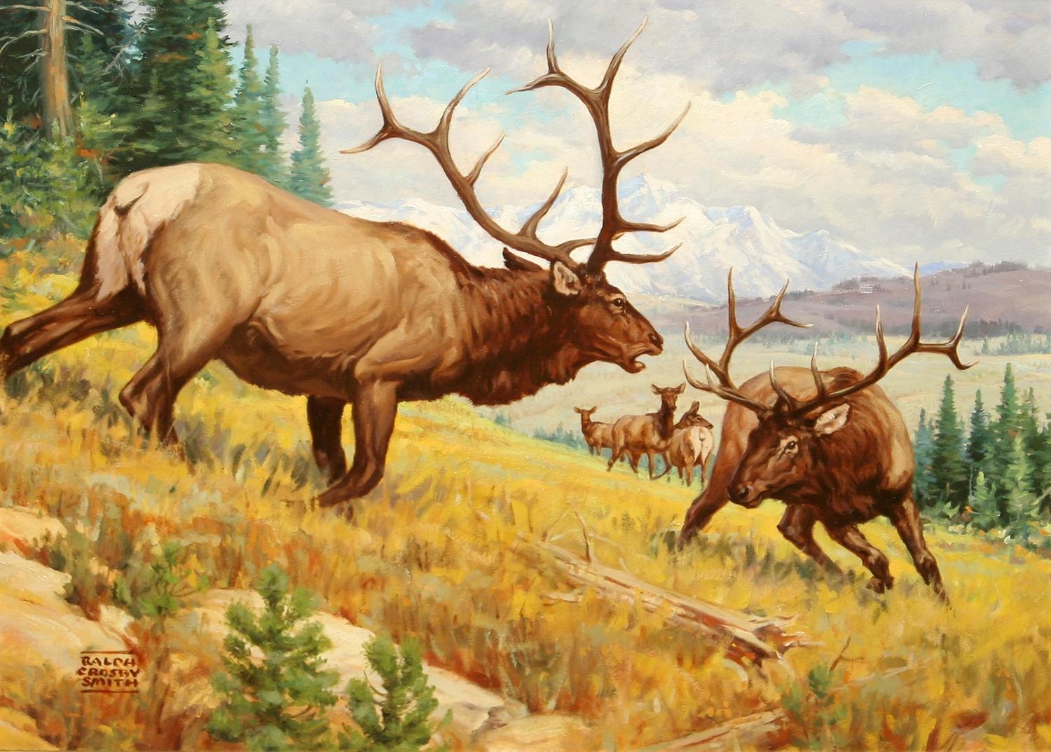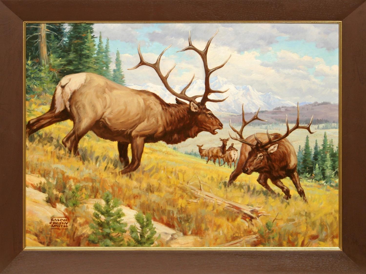 Ralph Crosby Smith (1911-1965). Wilderness Challenge. 20" x 26" oil on board. signed lower left. (est $2,500-3,500) Condition Report: Black lights clean and in new frame