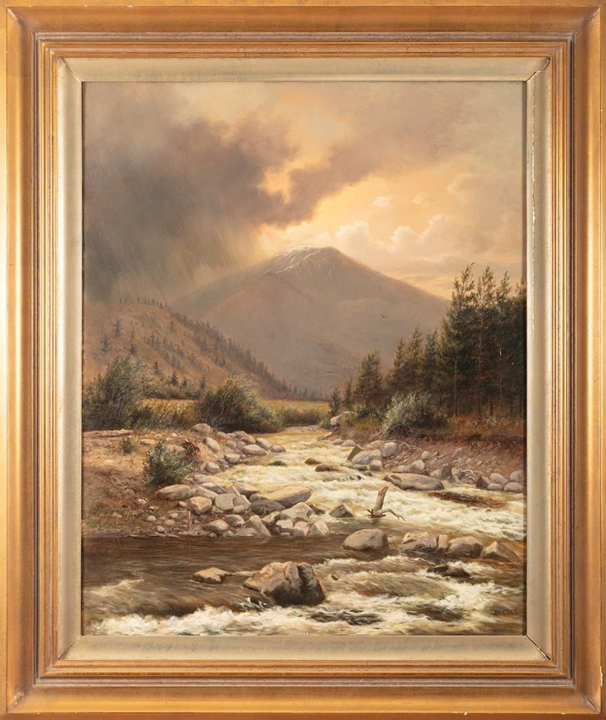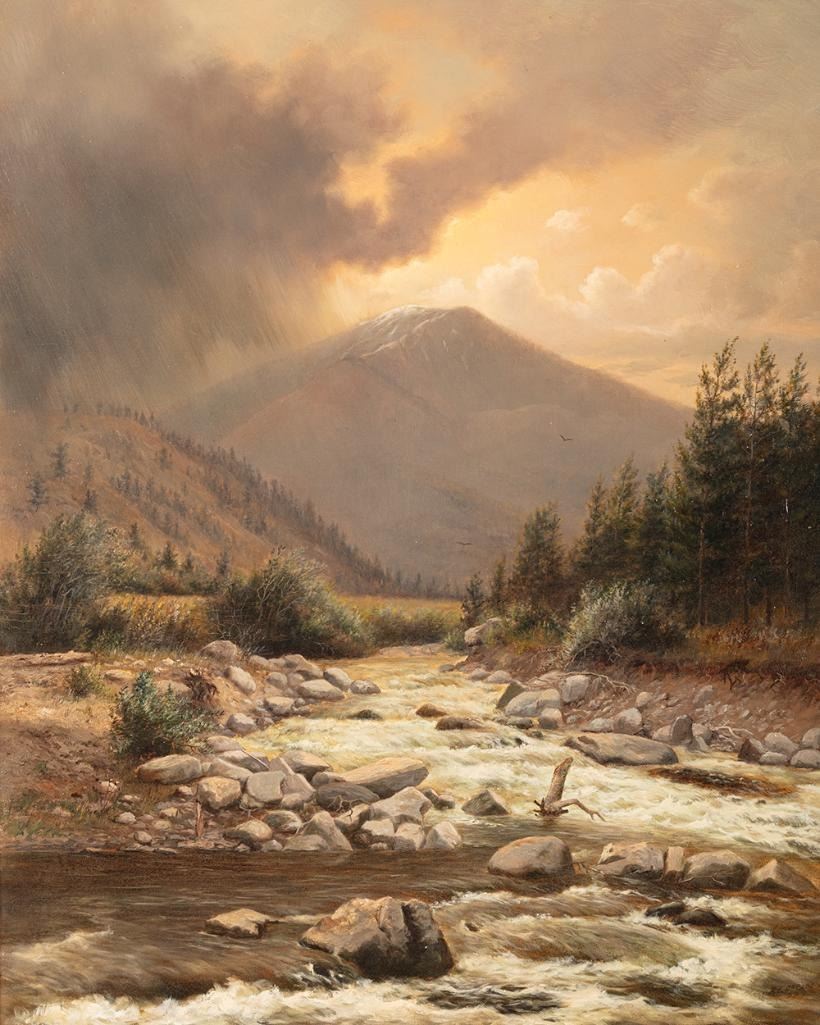 Ralph DeCamp was a notable American painter whose works captured the rugged beauty and diverse landscapes of the American West. Born in Attica, New York, DeCamp moved westward as a young man, eventually settling in Montana in the 1890s, where he became closely associated with the region’s artistic legacy. DeCamp’s art is characterized by its meticulous attention to detail and its ability to convey the vastness and grandeur of Western landscapes. He was particularly skilled at depicting the changing light and atmospheric effects on Montana’s prairies, mountains, and rivers, which earned him recognition as one of the state’s preeminent early painters.
