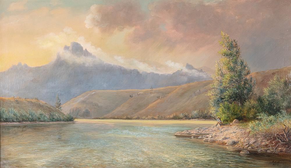 Ralph DeCamp was a notable American painter whose works captured the rugged beauty and diverse landscapes of the American West. Born in Attica, New York, DeCamp moved westward as a young man, eventually settling in Montana in the 1890s, where he became closely associated with the region’s artistic legacy. DeCamp’s art is characterized by its meticulous attention to detail and its ability to convey the vastness and grandeur of Western landscapes. He was particularly skilled at depicting the changing light and atmospheric effects on Montana’s prairies, mountains, and rivers, which earned him recognition as one of the state’s preeminent early painters.