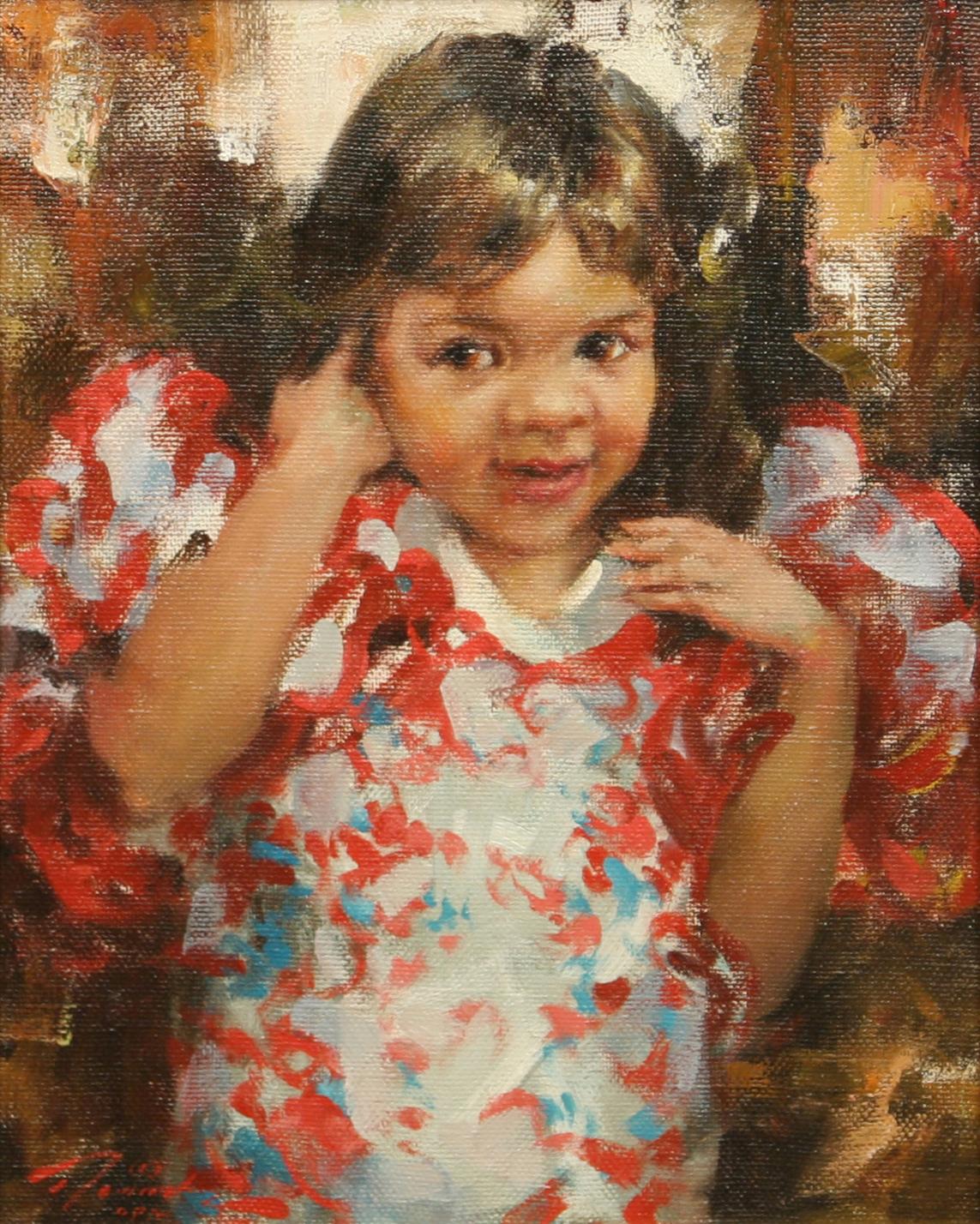 Ramon Kelley (b. 1939), NAWA. Little Girl in Spanish Dress. 20" x 16" oil on canvas. signed lower left. (est $6,000-8,000) Condition Report: Black lights clean. In fine gold frame
