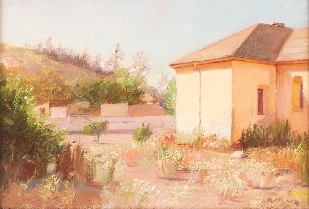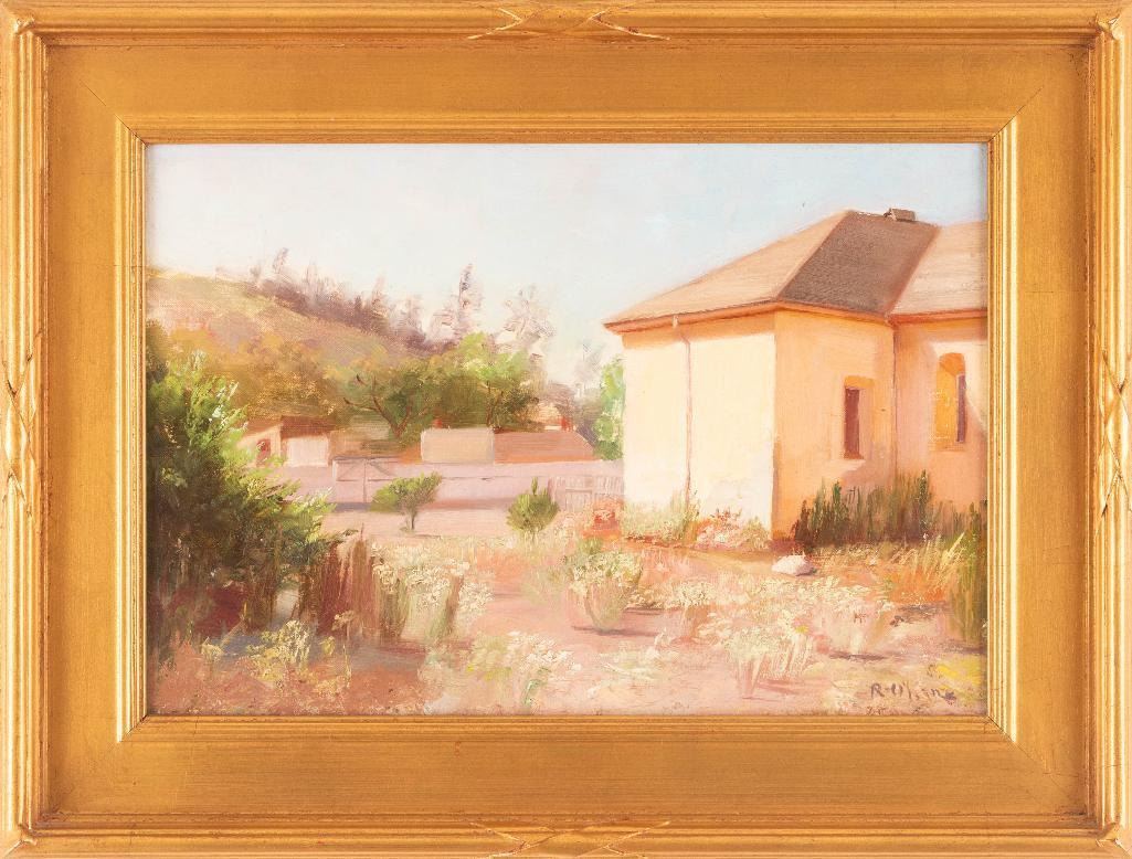 Regina O'Kane (1867-1956) Nuestra Senora de Los Angeles, California 12" x 16" oil on board Signed lower right Verso: Titled and dated 1897. $800-1,000 Provenance: Ex. J.B. Gulbranson Collection, California.