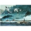 Richard Amundsen (1928 - 1997). Snow Geese Take a Look. 10" x 14" oil on board. Signed lower left: Amundsen. Literature: Sketch for Snow Geese from the Remington Wildlife Art Collection. Used in the 1980 calendar (included with this lot).