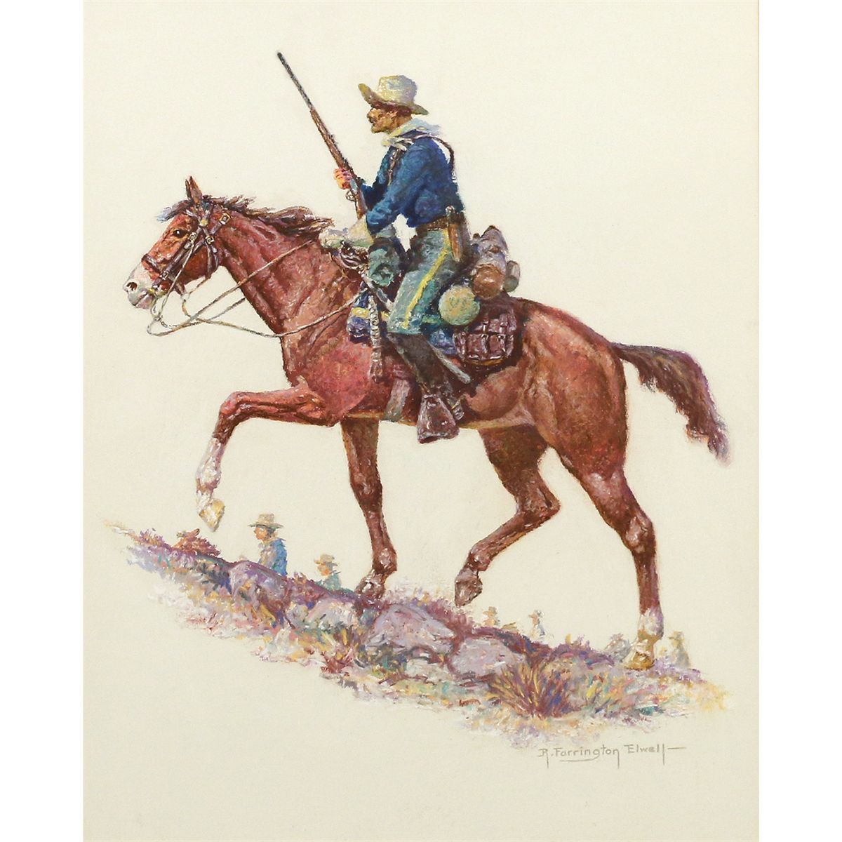 Robert Farrington Elwell (1874 - 1962). U. S. Trooper. 17" x 14" pastel. Signed lower right: R. Farrington Elwell