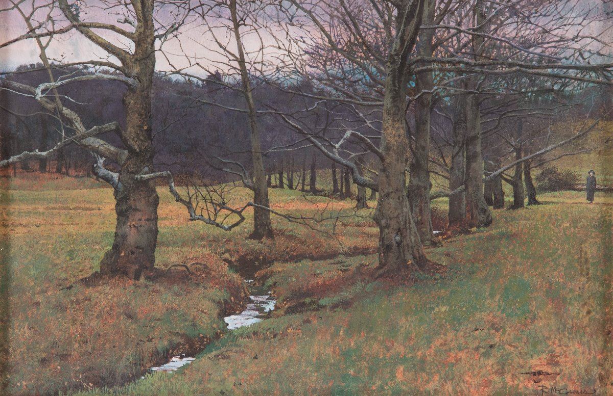 Robert McGinnis (1926 - ). Landscape. 8 ½" x 12 ½" oil on board. Signed lower right.