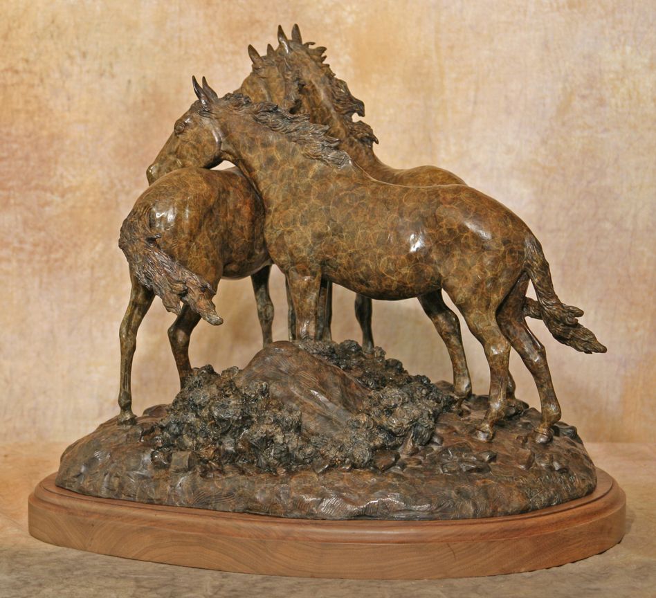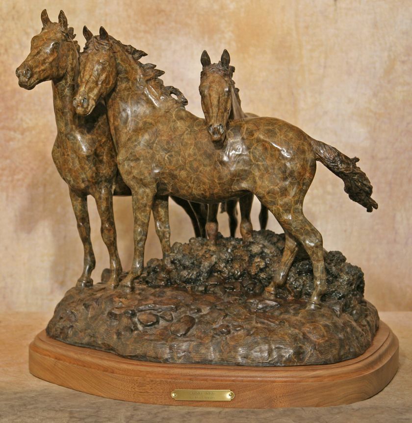Ron Stewart (1941 - ). Summer Wind. 17" x 21" x 15" bronze. Inscribed: RON STEWART © 27/45. Internet, absentee & telephone, absentee & telephone bidders please be advised that this bronze weighs approx. 84lbs. Please call our shipper for an estimate prior to bidding - The Box Shop of Cheyenne (307) 634-0221. Condition reports can be viewed at www.marchinmontana.com/docs/2013CR.pdf