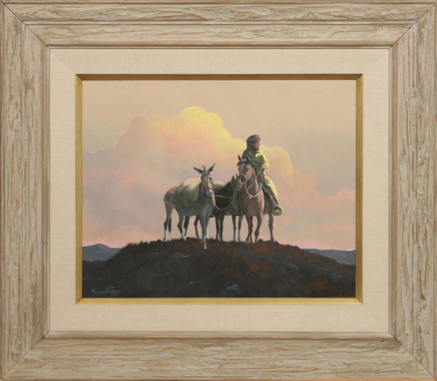 Roy Kerswill (1925-2002). Time To Camp. 16" x 20" oil on board. signed lower left. (est $1,500-2,500) Condition Report: Black lights clean