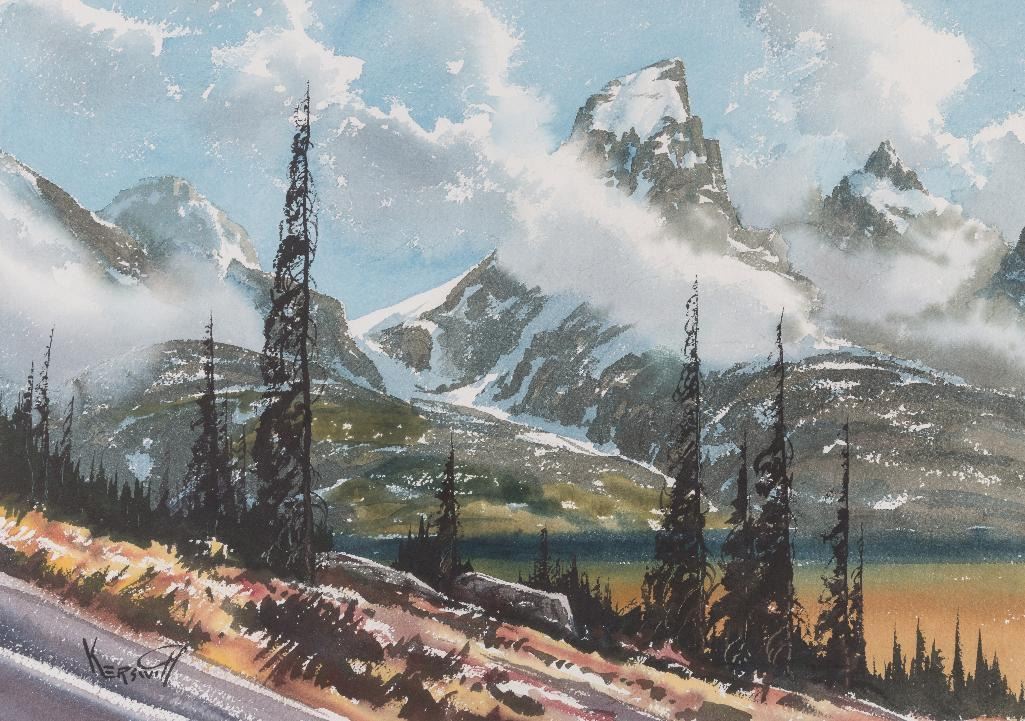 Roy Kerswill (1925-2002) The Grand Tetons 19.75" x 28" watercolor Signed lower left $2,000-3,000