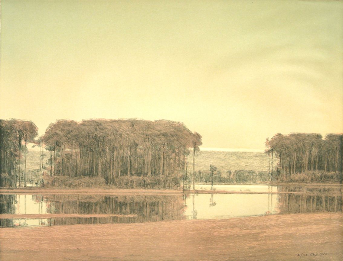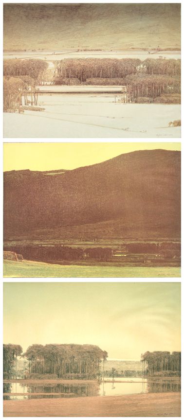 Russell Chatham (1939 - ). Yellowstone River Suite. Portfolio of three 20" x 26 ¼" lithographs. Each pencil signed lower right: 41/135 [artist's cypher] 1982 & blind stamped. Condition reports can be viewed at www.marchinmontana.com/docs/2013CR.pdf