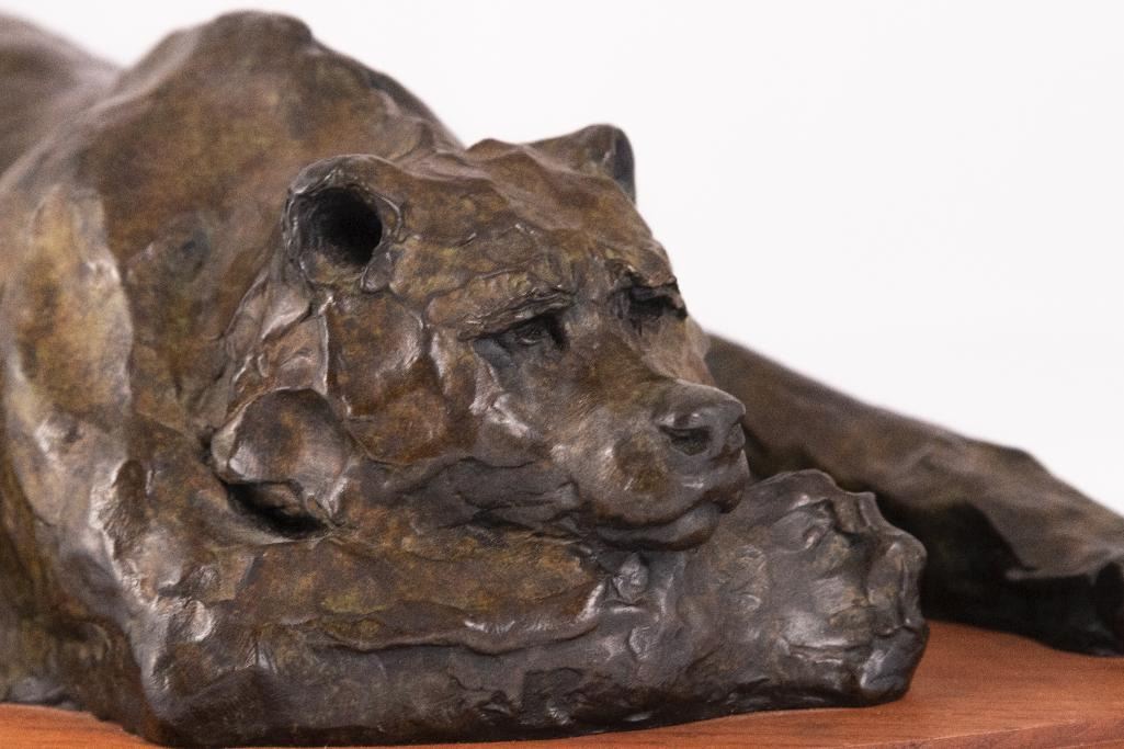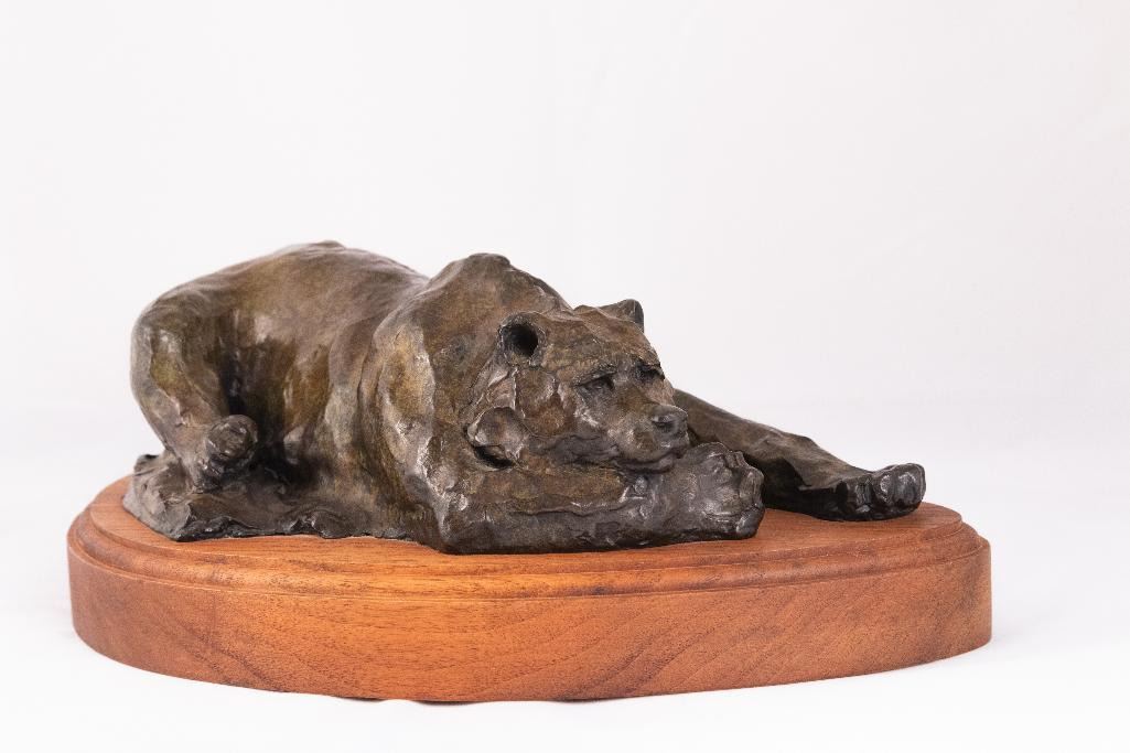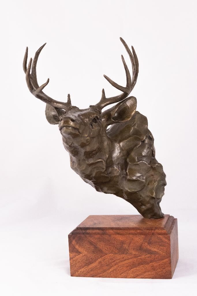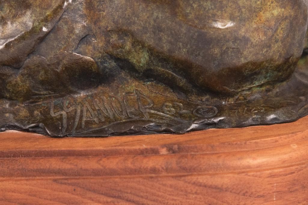 Sherry Salari Sander (1941 - ) Three bronzes: 1) Sleepy Time 4" x 14" x 7" Inscribed: S. Sander '82 (c) 7/25 2) Deer Bust 11.25" x 7.5" x 7" Inscribed: (c) S. Sander '78 7/25 Arrowhead Bronze Works (arrowhead cipher) 3) Coyote Skunk 5" x 10.5" x 7.5" Inscribed: S. Sander '78 11/15 $2,000-3,000