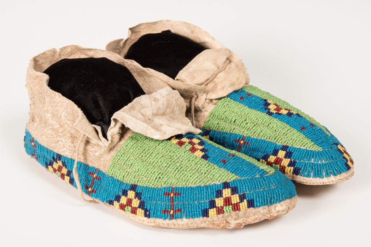 Sioux Beaded Man's Moccasins, 10 ¾" long