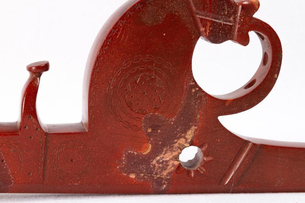 26" overall. Stylized horse and crane on stem along with intricate engravings. Circa 1890.