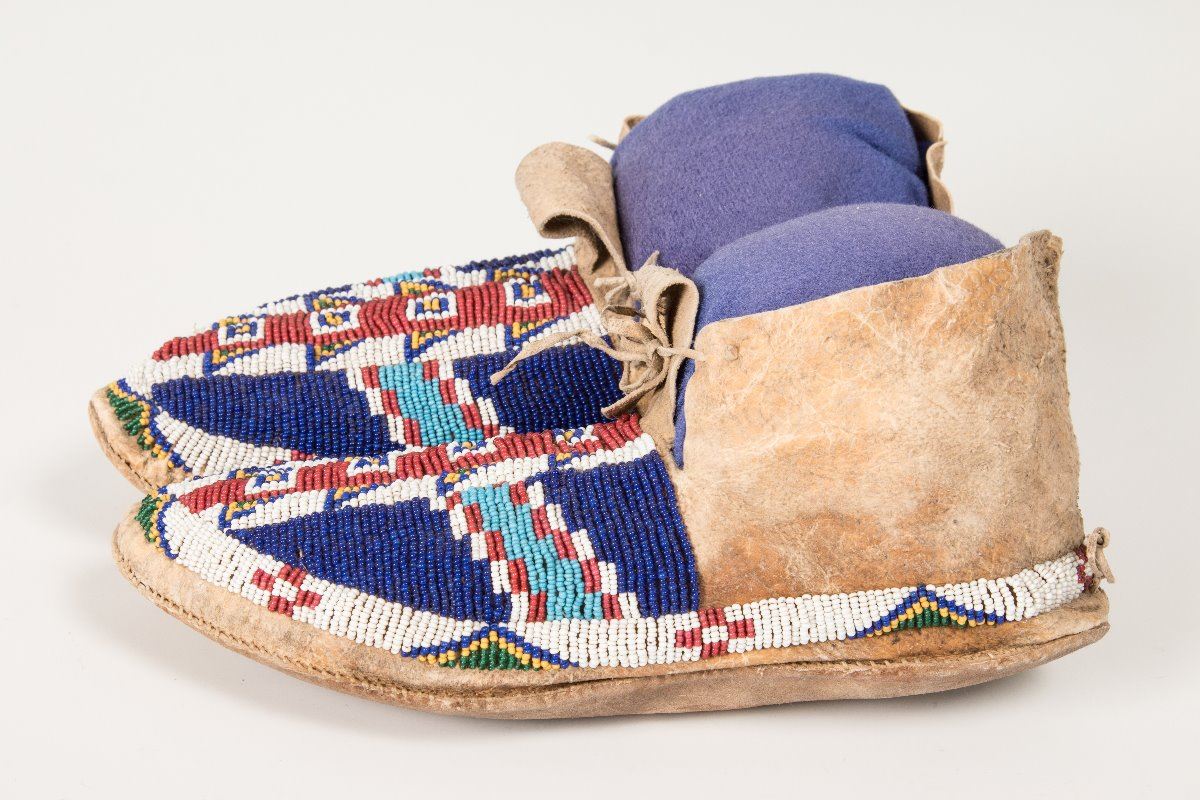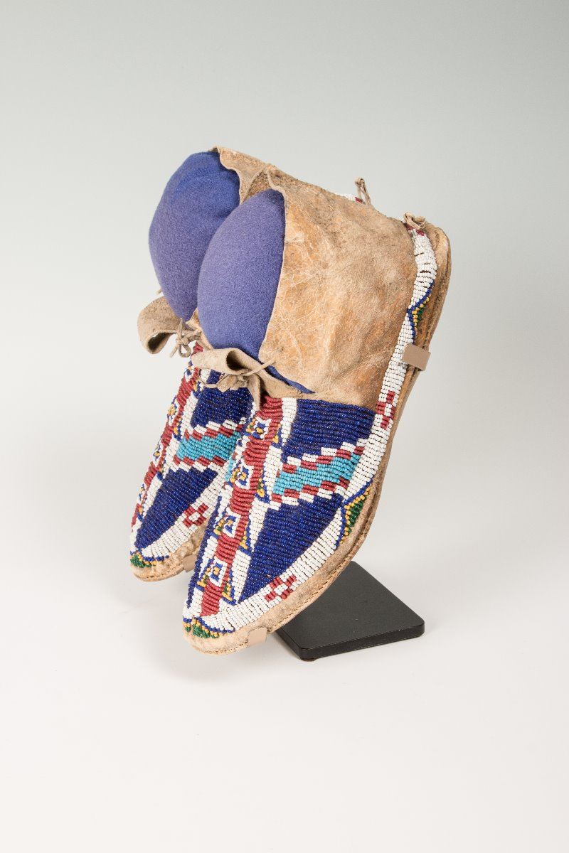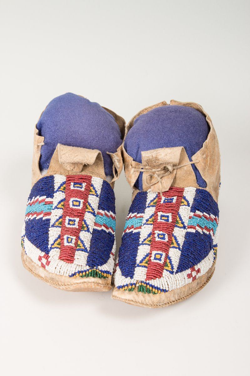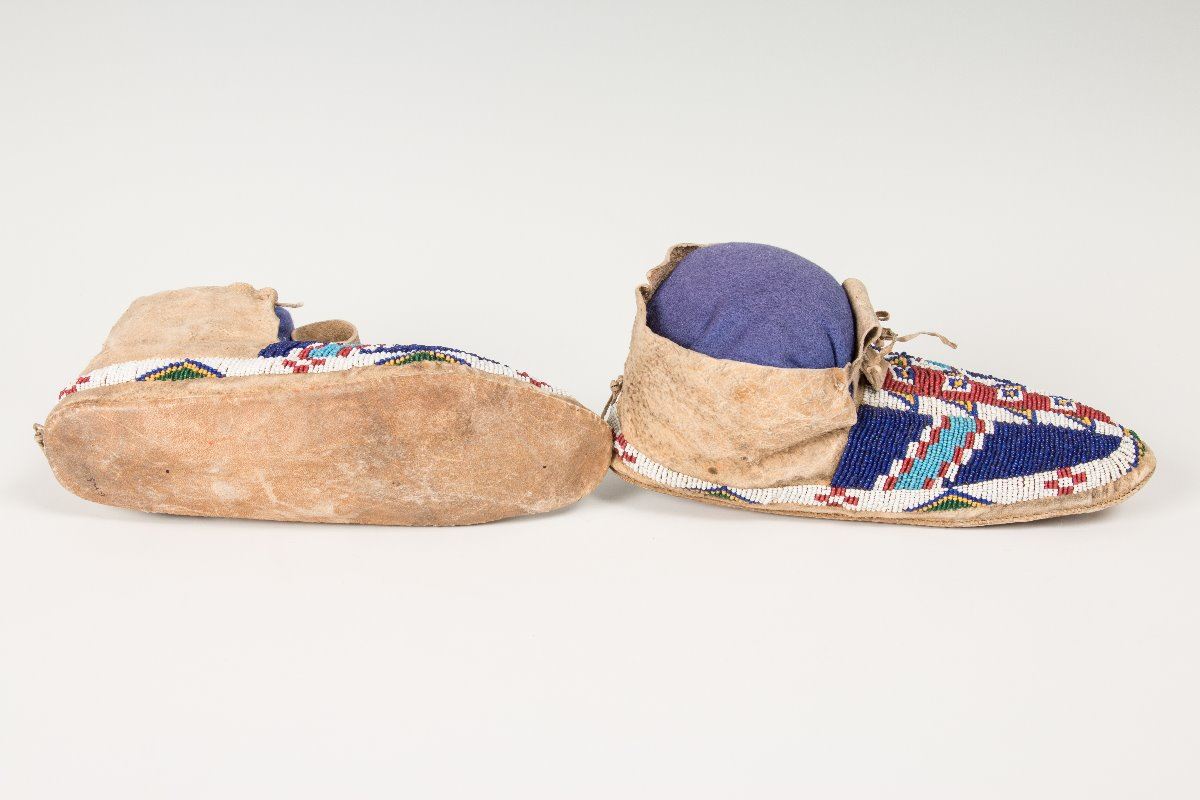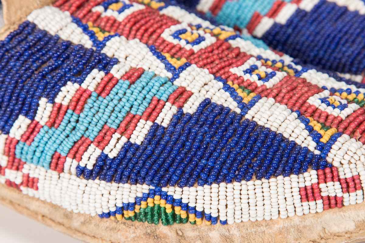 Sioux Fully Beaded Man's Moccasins. 10" long. Intricate beaded geometric designs. Late 19th century.