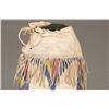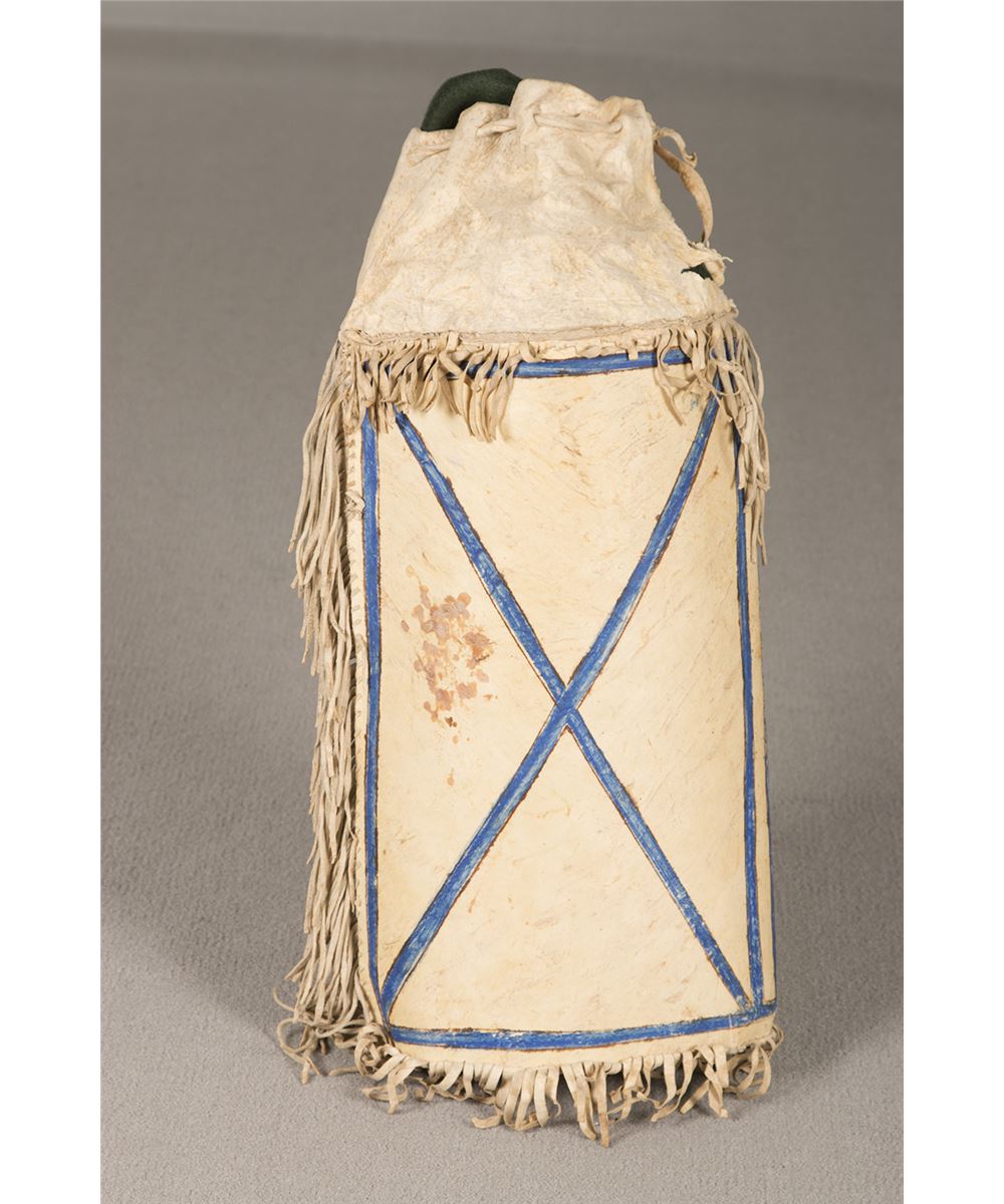 Sioux Painted Parfleche Bag. 16 ½" x 12". Beautiful painted designs with Indian tanned hide top and fringe. 19th cent. Ex- Museum item. Has museum deaccession number. Provenance: Greg Perillo collection