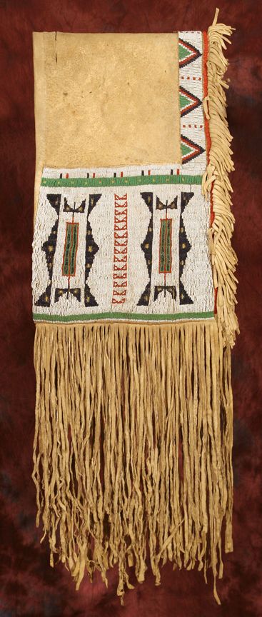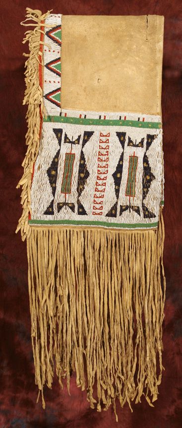 Sioux Saddle Drape. 43" x 13". Fabulous beadwork on Indian tanned hide. 18" of fringe on both ends, 2" fringe on the sides. 19th century. Provenance: Collection of Dr. Delwin & Karen Bokelman, PA. Condition reports can be viewed at www.marchinmontana.com/docs/2013CR.pdf
