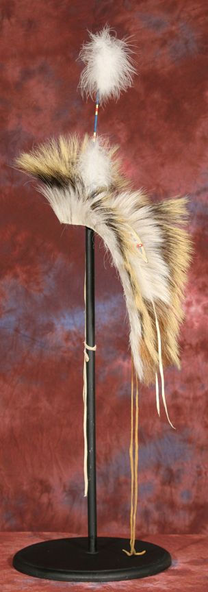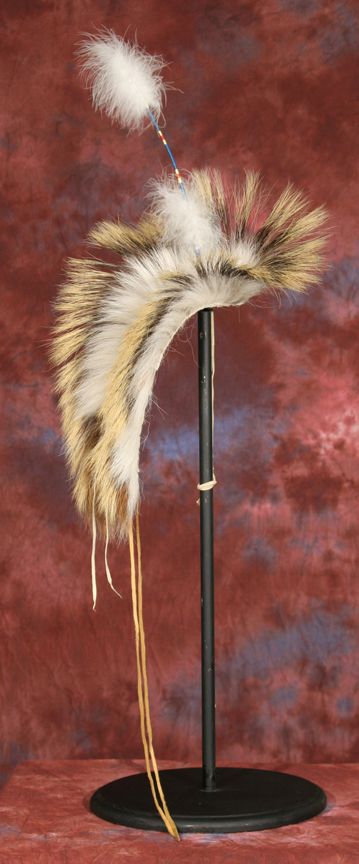 Southern Plains Roach. 18" x 4". Porcupine guard hair. Leather spreader with 13" original thread-wrapped tassel decorated in chicken feathers. 19th century. Provenance: Collection of Dr. Delwin & Karen Bokelman, PA., & pictured in their book Precious Dreams, page 36. Condition reports can be viewed at www.marchinmontana.com/docs/2013CR.pdf