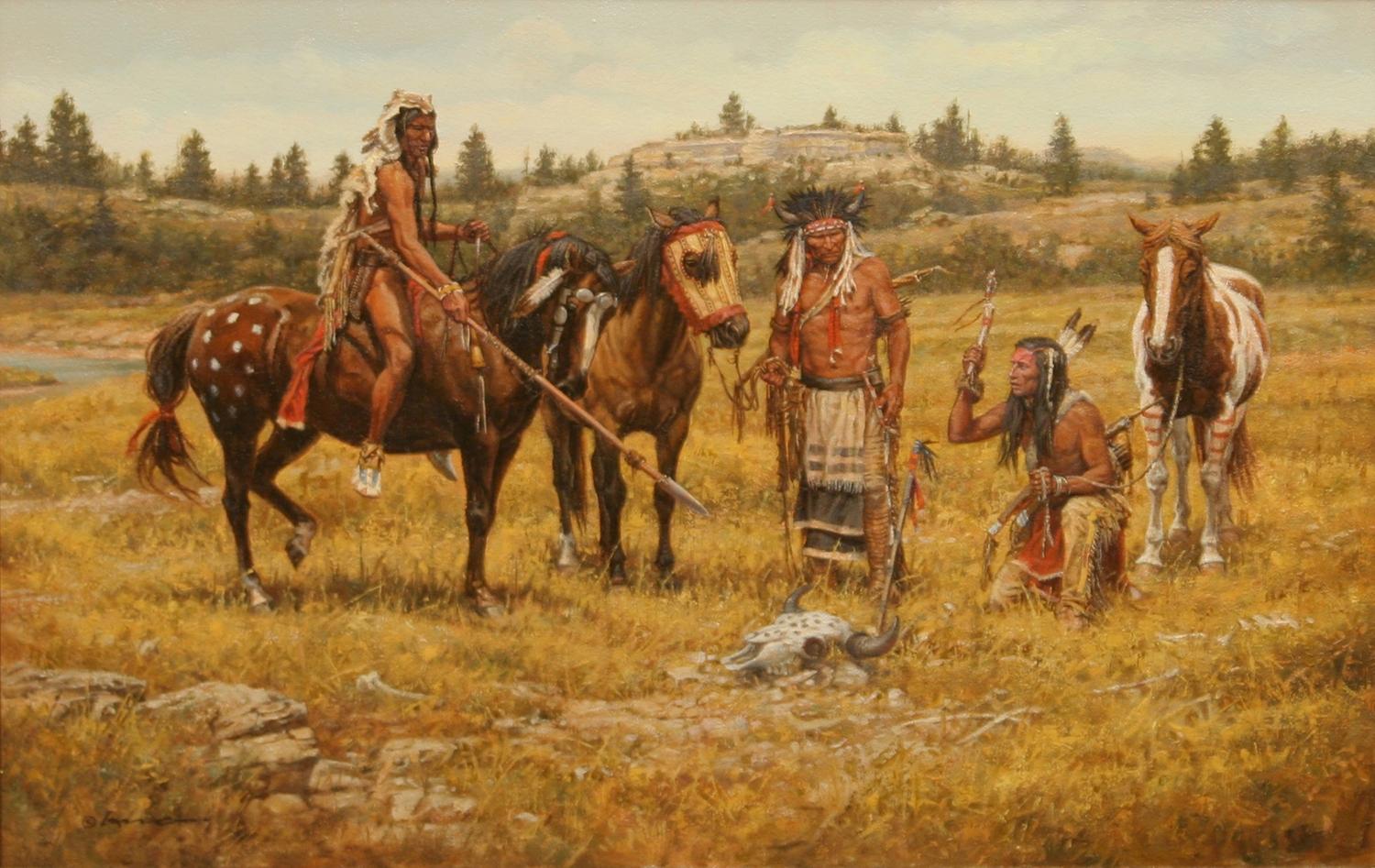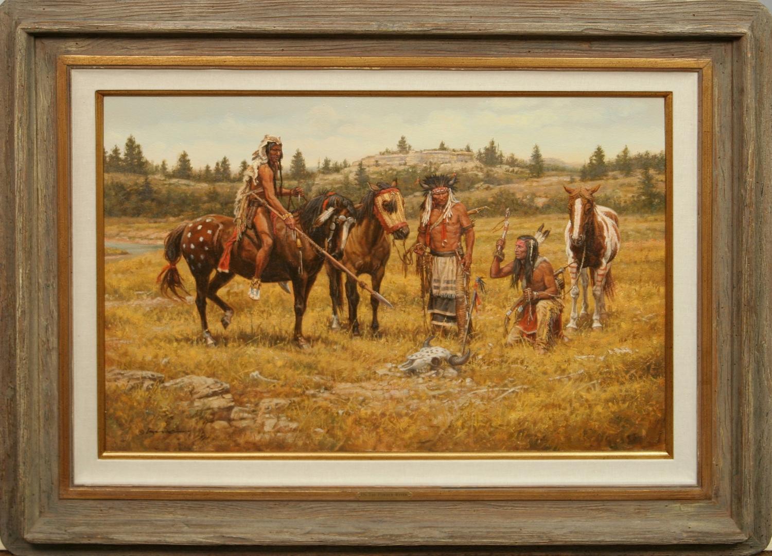 Steven Lang (b. 1960). On The Powder River. 20" x 30" oil on canvas. signed lower left. (est $3,000-4,000) Condition Report: Black lights clean and nicely framed