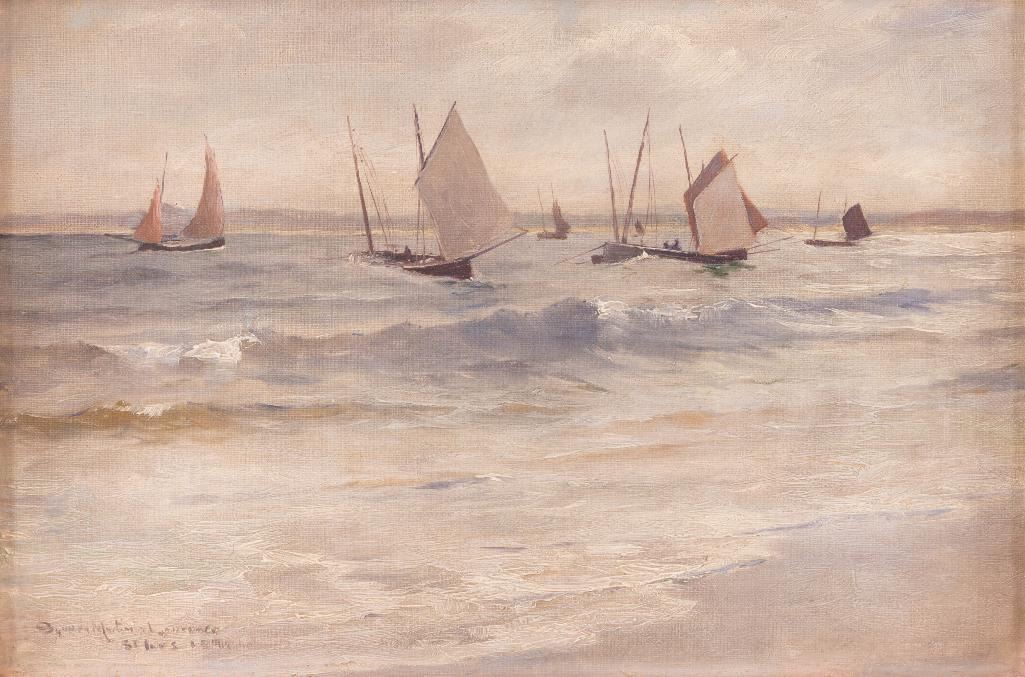 Sydney Laurence (1865-1940) Sailboats, St. Ives 12" x 18" oil on canvas Signed and dated 1890 lower left $3,000-5,000 Provenance: Braarud Fine Art, La Conner, Washington. The Bank of Alaska gifted to Leo F. Rhode, former Alaska State. Representative, Homer, Alaska, gifted to Linda Holbeck, Washington.