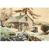 Theodore Roosevelt Lambert (1905 - 1960). Cabin in Juneau. 7.25" x 10.5" watercolor. Signed lower right: T. R. Lambert 1936.