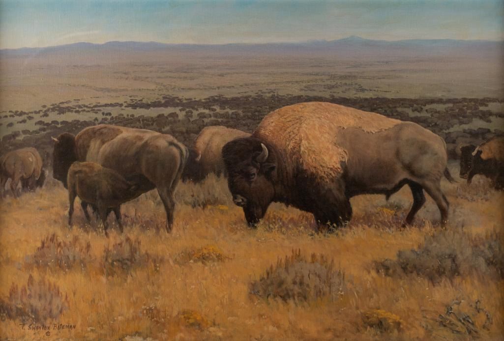 Terry Swanton Bateman (1942 - ) Buffalo Herd 24" x 36" oil on canvas Signed lower left $1,500-2,500