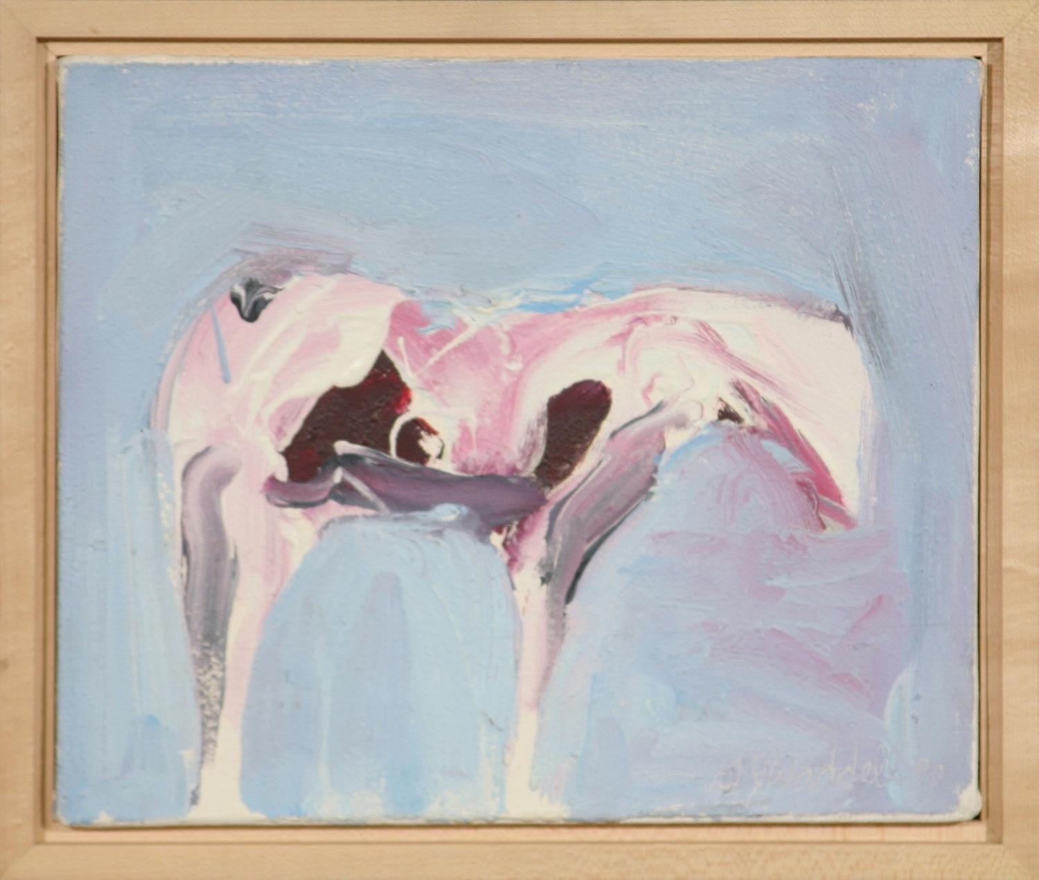 Theodore Waddell (b. 1941). Carmine. 10" x 12" oil on canvas. signed lower right. (est $600-800) Condition Report: Black lights clean. In shadow box frame