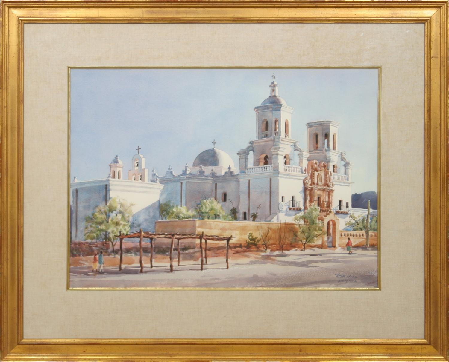Thomas Hill (b. 1925). Morning San Xavier. 20" x 28" watercolor. signed lower right. (est $2,500-3500) Condition Report: Excellent condition