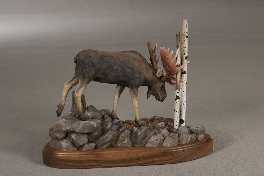 Todd Swaim (1965 - ). Coming into Rut. 15" x 20" x 9" woodcarving. Signed: 1/1 T. Swaim. Provenance: Estate of Ken Holm, Denver, CO.